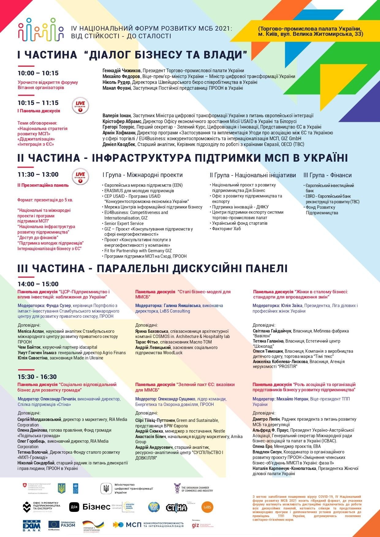 Більше 600 представників мікро-, малих і середніх підприємств матимуть можливість безкоштовно дистанційно підключитись до роботи усіх дискусійних панелей форуму за умови попередньої реєстрації.