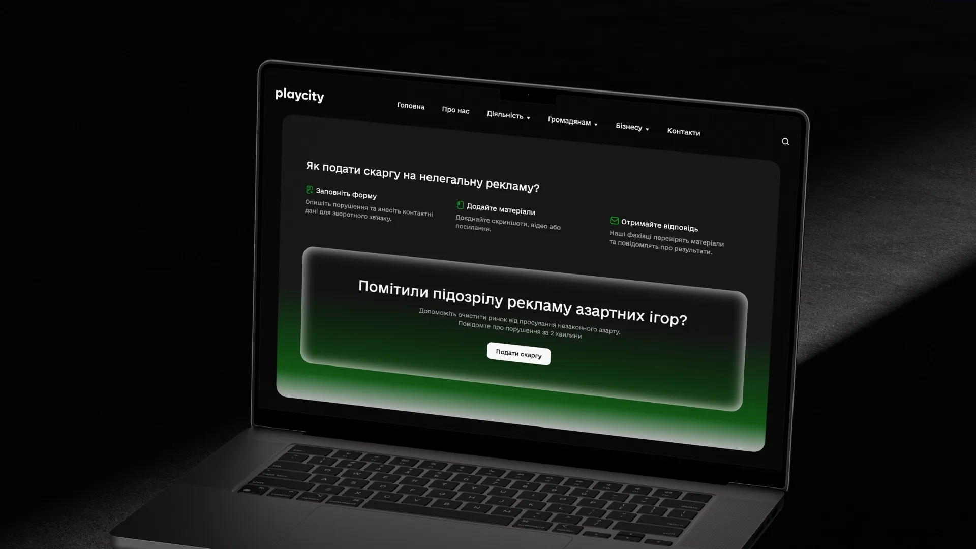 Повідомити про незаконну рекламу азартних ігор тепер можна онлайн. На сайті PlayCity запустило інструмент для скарг на нелегальний контент. Нова опція дозволяє швидко зафіксувати порушення та передати його на перевірку команді регулятора.