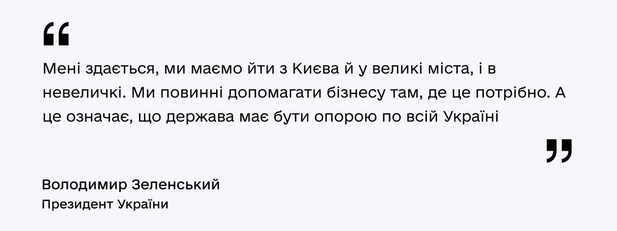 Президент зазначив, що Центри підтримки підприємців треба створювати не лише в обласних центрах, а й у невеликих містах, зокрема в центрах об’єднаних територіальних громад.