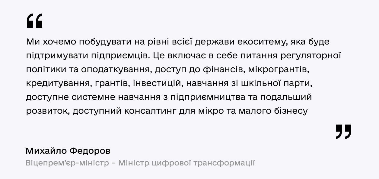 Під час візиту Президента Віцепрем'єр-міністр — Міністр цифрової трансформації Михайло Федоров презентував масштабний національний проєкт із розвитку малого та середнього бізнесу Дія.Бізнес.