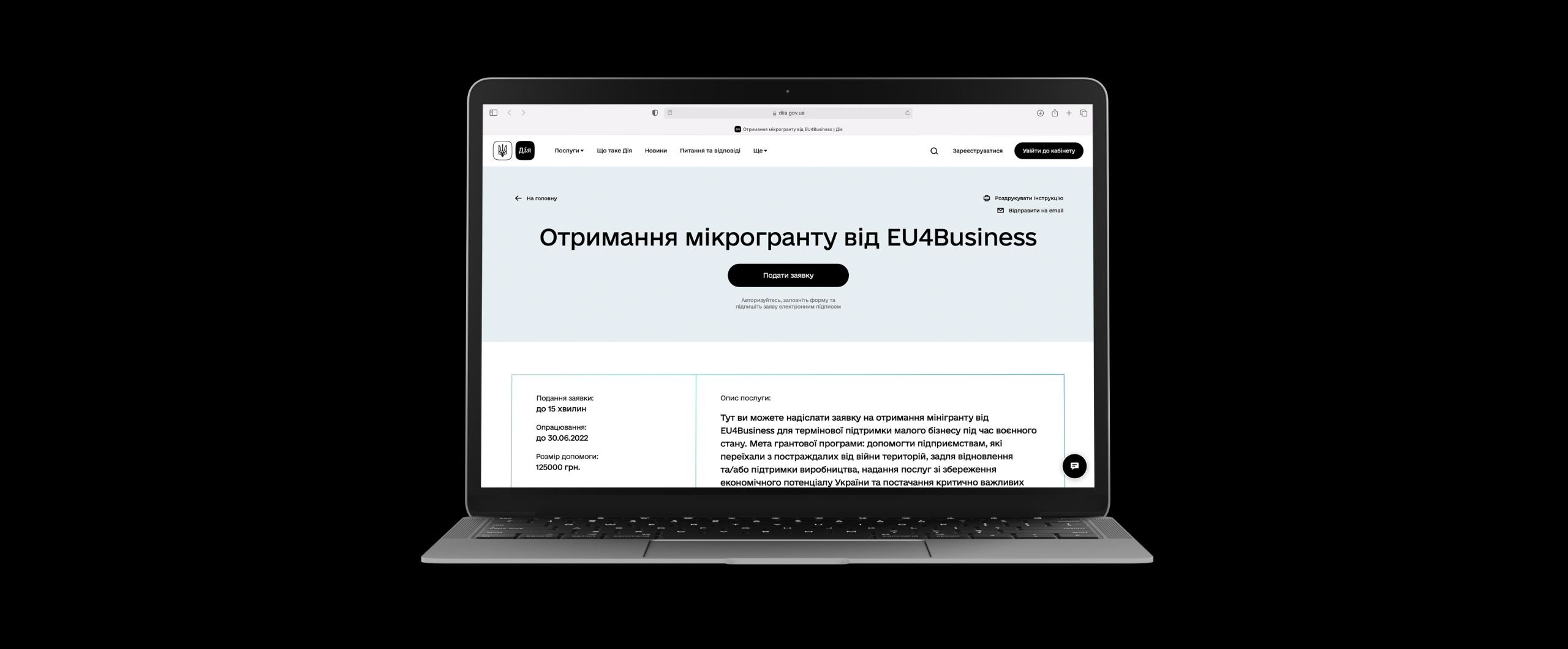 Мікрогранти в еквіваленті по 125 000 грн (4000 євро) кожен будуть доступні з 13 травня 2022 року через портал Дія.