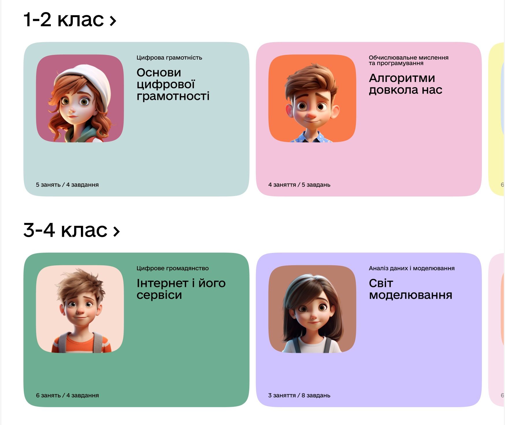 Освітні ресурси ІТ-студій можна використовувати як у початковій, так і в базовій та старшій школі. Серед новинок — анімовані відео, презентації, локалізовані матеріали та відео від Code.Org, відео з експертами-практиками. До створення навчальних відео також долучилися Харківський, Одеський і Львівський ІТ-кластери.