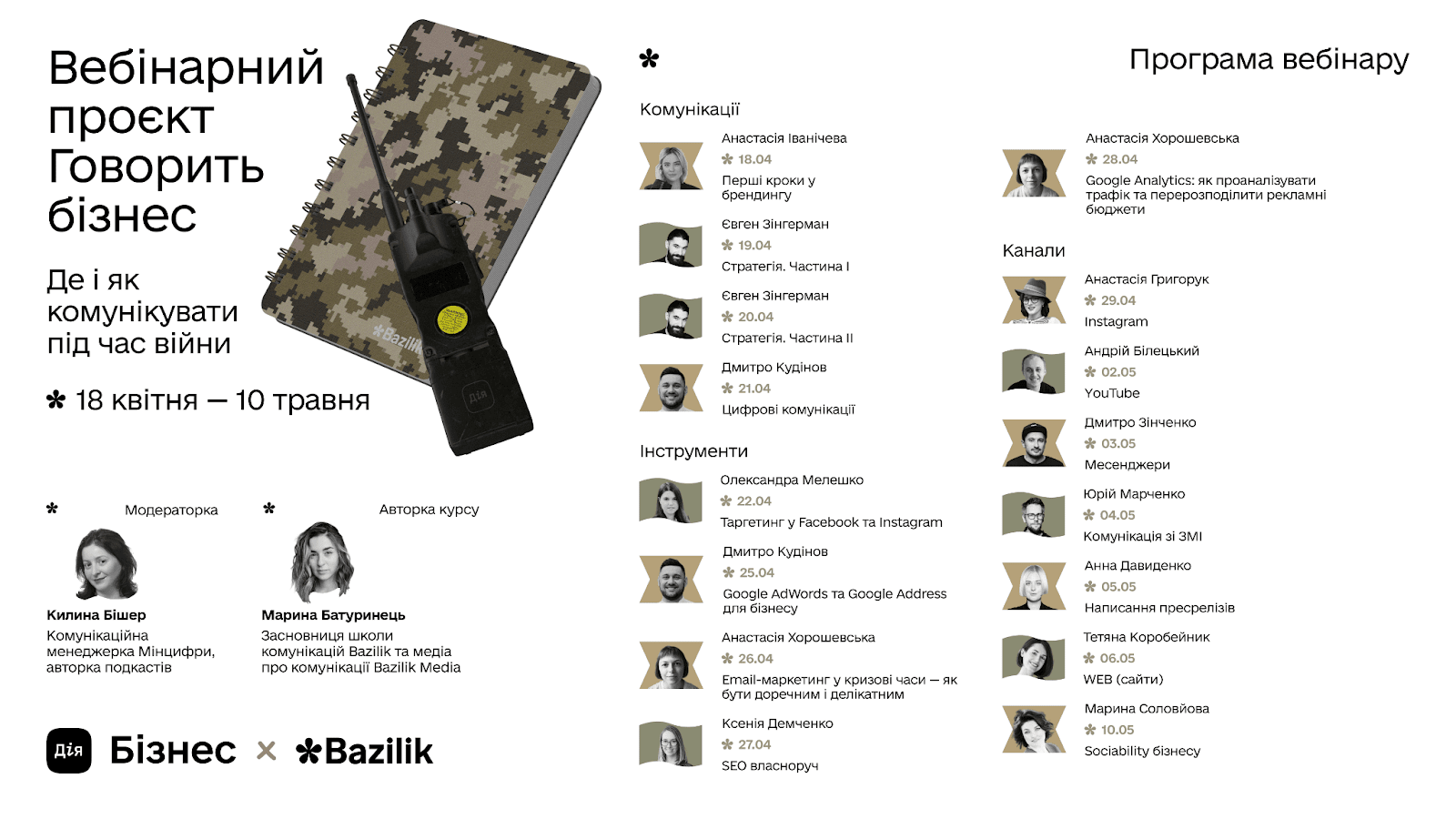Національний проєкт із розвитку підприємництва Дія.Бізнес, Офіс з розвитку підприємництва та експорту, практична школа комунікацій Bazilik запускають навчальну програму «Говорить бізнес. Де і як комунікувати під час війни».