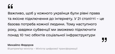 Михайло Федоров: У 2021 році 2,5 млн українців у селах отримають доступ до інтернету