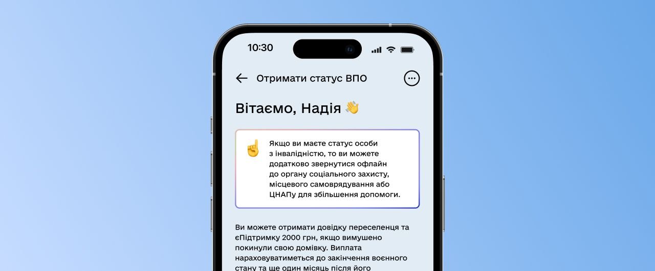Наша команда разом з Мінсоцполітики успішно провела технічне оновлення послуги для ВПО. Послуга знову доступна в застосунку для нових користувачів.