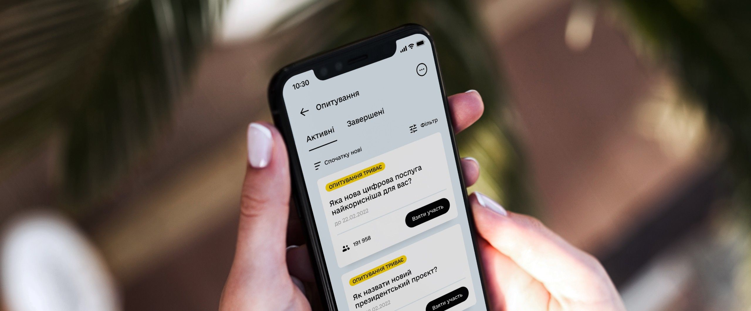 Під час Diia Summit 8 лютого Мінцифра презентувала нову послугу в застосунку Дія — опитування. За цей час два опитування пройшли понад 200 000 українців.