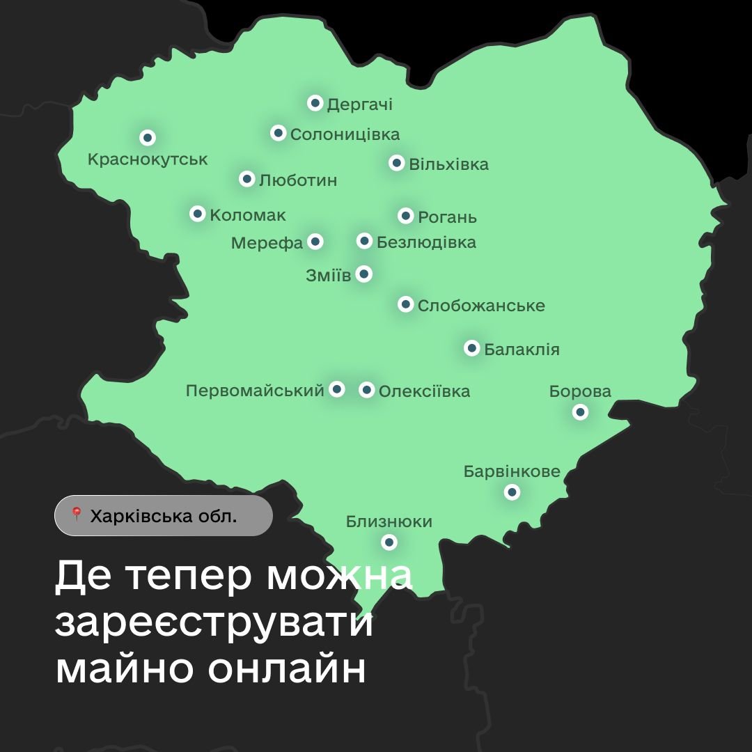 Раніше скористатися послугою на порталі Дія можна було у Львівській області, Тернополі, Харкові, Чугуївському районі Харківщини, а також у Закарпатській, Київській, Дніпропетровській, Рівненській, Тернопільській, Харківській, Хмельницькій, Чернігівській областях та Луцьку. Тепер послуга доступна в нових населених пунктах Харківщини та Полтавщини. Де саме можна скористатися сервісом — дивіться на інфографіці.