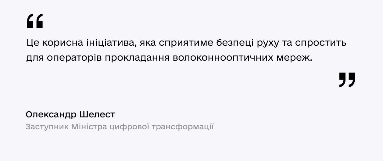 Так, під час побудови нових доріг, реконструкції та капітальному ремонті наявних шляхів з’явиться можливість прокладати труби, у яких оператори розміщатимуть оптичні кабелі.