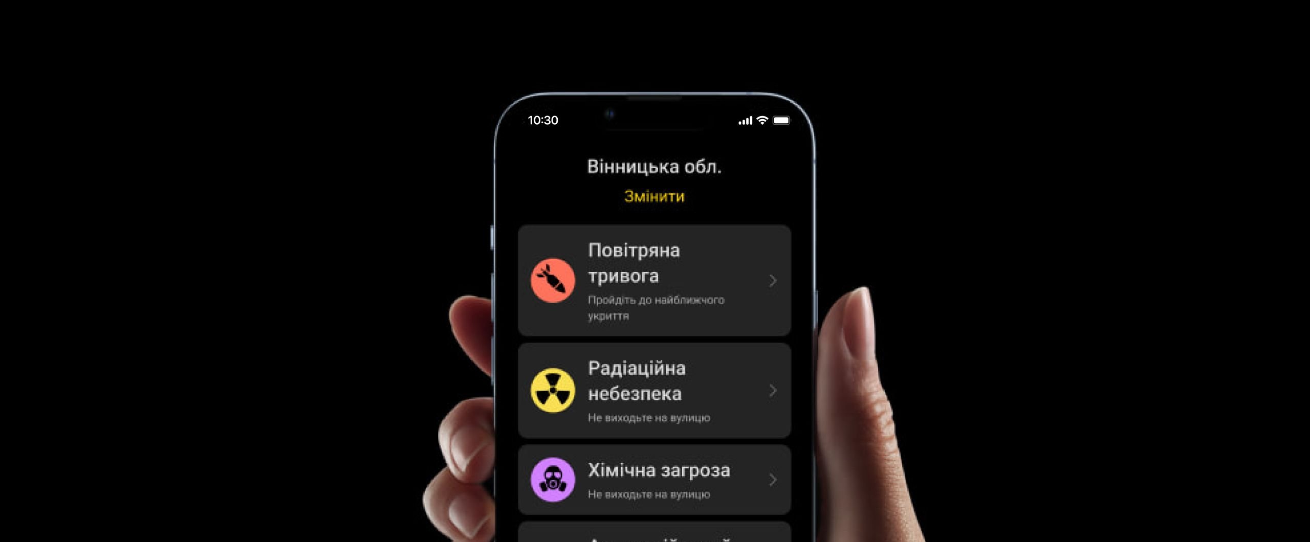 Загалом застосунок «Повітряна тривога» версії 4.0 сповіщає про початок та завершення 5 типів тривог: